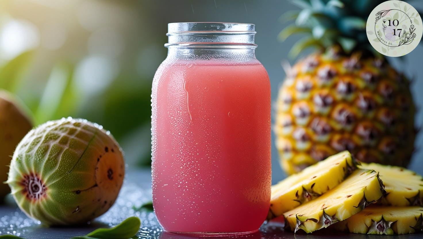 Guava is packed with vitamin C, supporting immune function and skin health. Pineapple aids in digestion and provides anti-inflammatory benefits. Soursop is known for its high antioxidant content and immune-supportive properties and fibre.
